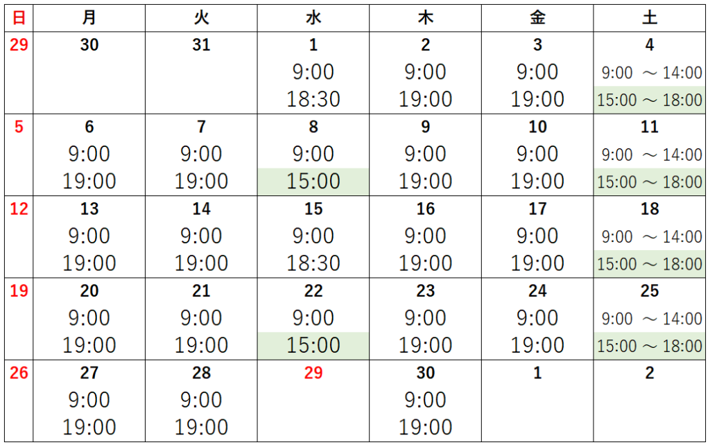 4月の営業時間